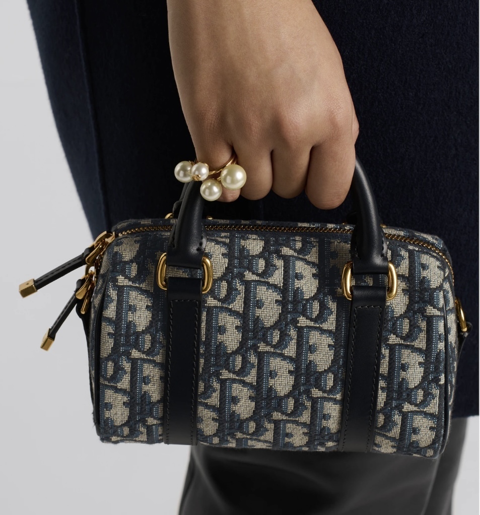 2024年冬の新作、ディオール グルーヴ 16 ミニバッグは、マリア・グラツィア・キウリがデザインし、ブルーのディオール オブリーク ジャカードで作られたエレガントでモダンなスタイルです。広々としたコンパートメントには必需品をすべて収納できます。レザーのトップハンドルと、調節可能で取り外し可能なストラップが特徴のこのバッグは、手で持つことも、肩にかけることも、斜めがけすることもでき、毎日のお供として最適です。