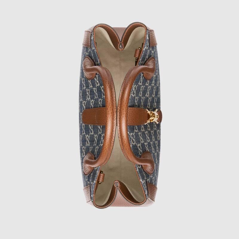 ジャッキー1961シリーズが新メンバーの登場:モノグラムエレメントトートバッグ。 愛されているデニム生地は、グッチの美的観点から解釈され、クラシックなGGパターンに統合されています。 この単一の製品は、ブランドロゴの生地とハンドバッグの象徴的なプッシュインロックアクセサリーと巧みに調和します。
