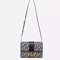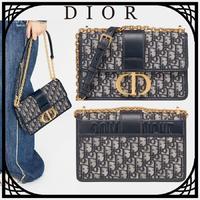 - 【DIOR】ブルー “30 MONTAIGNE” ディオール オブリーク ジャカード キャンバス フラップ チェーンクラッチバッグ