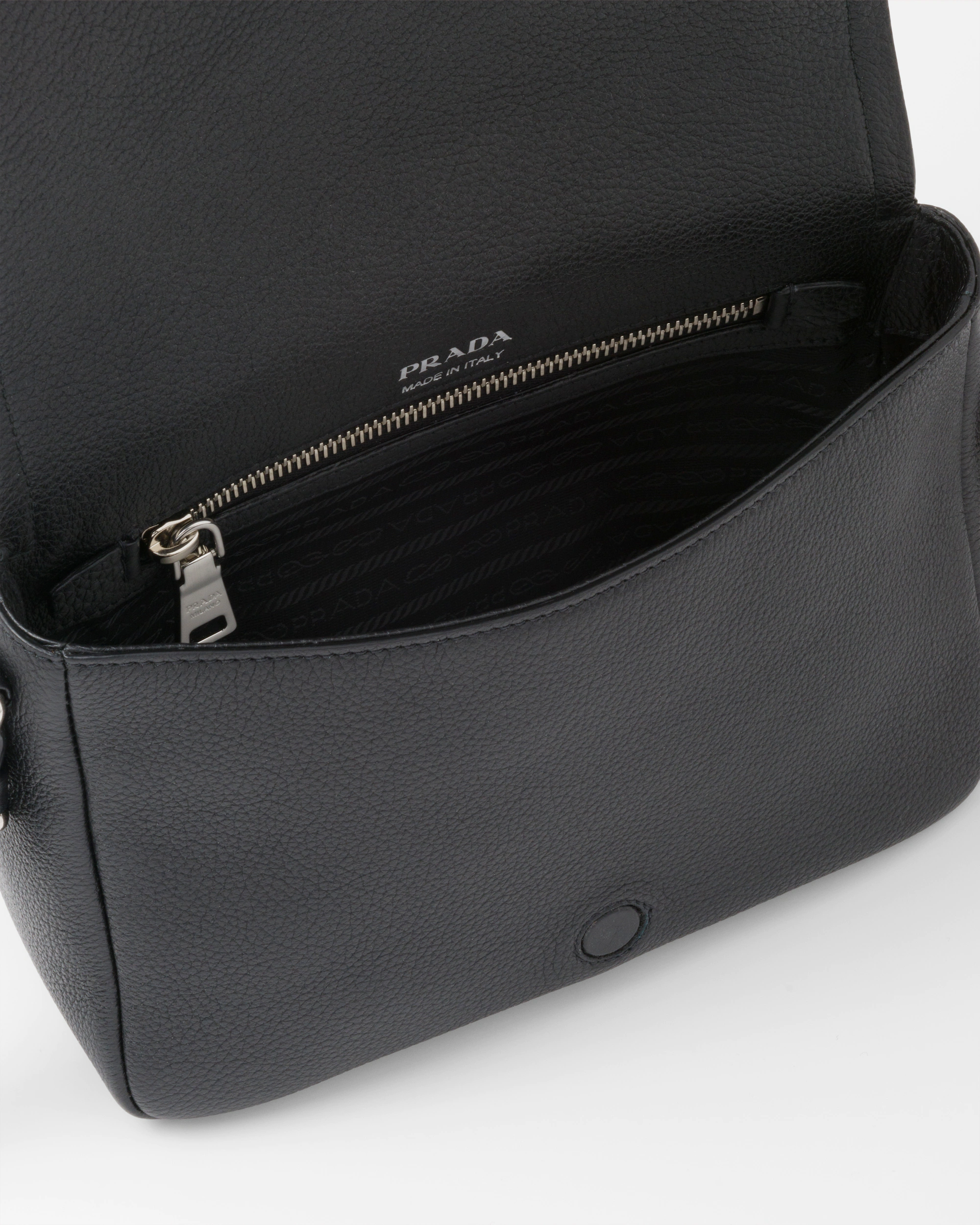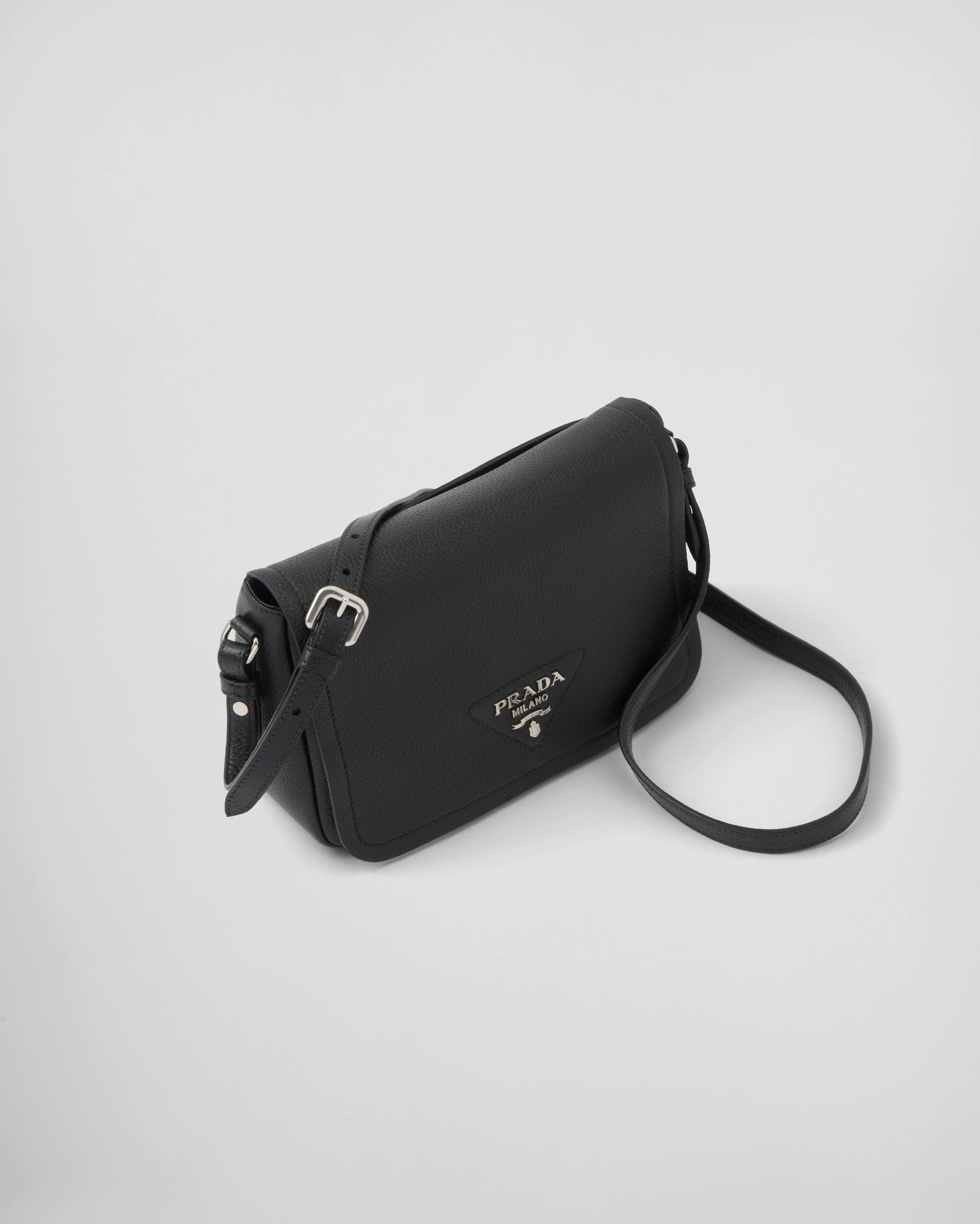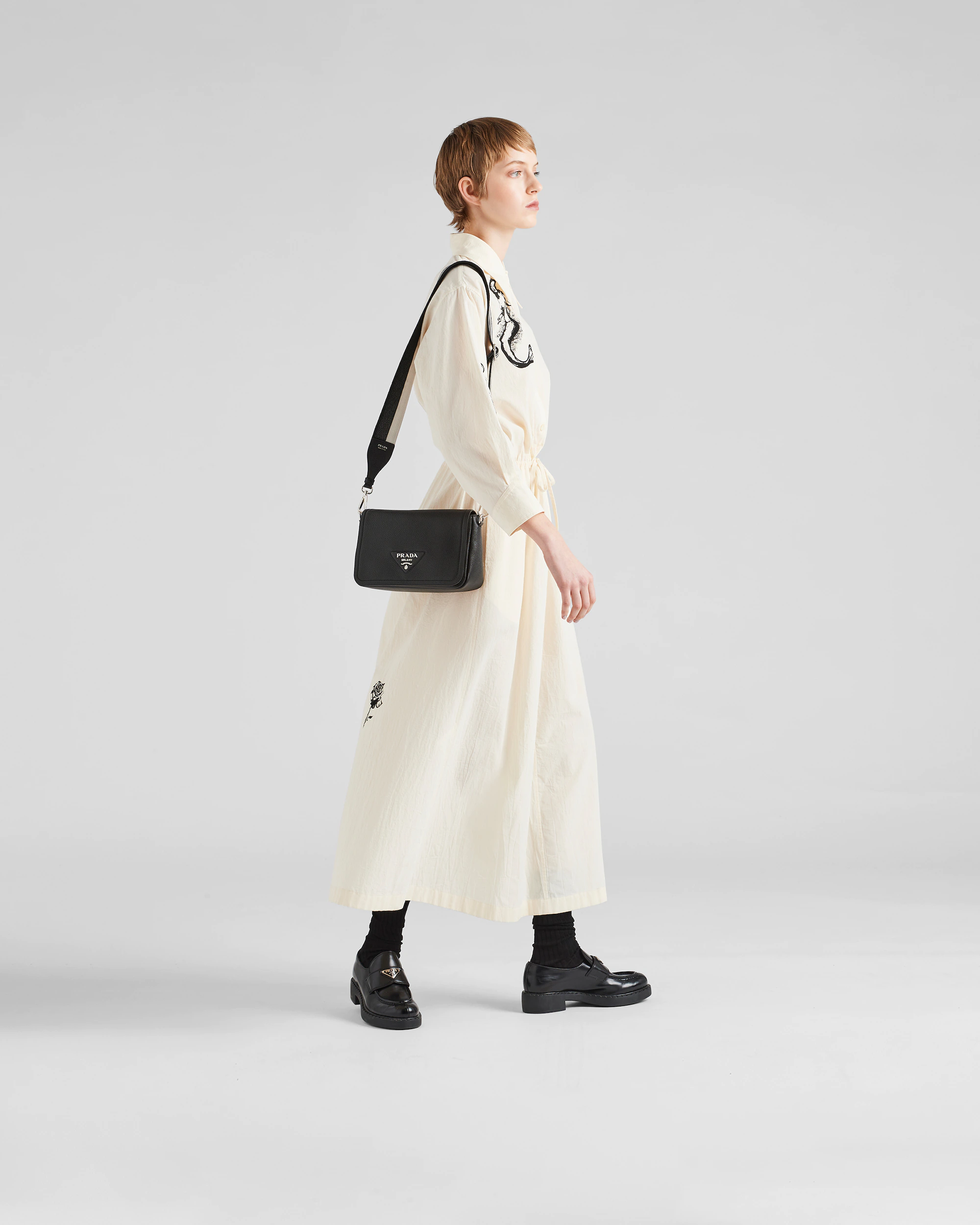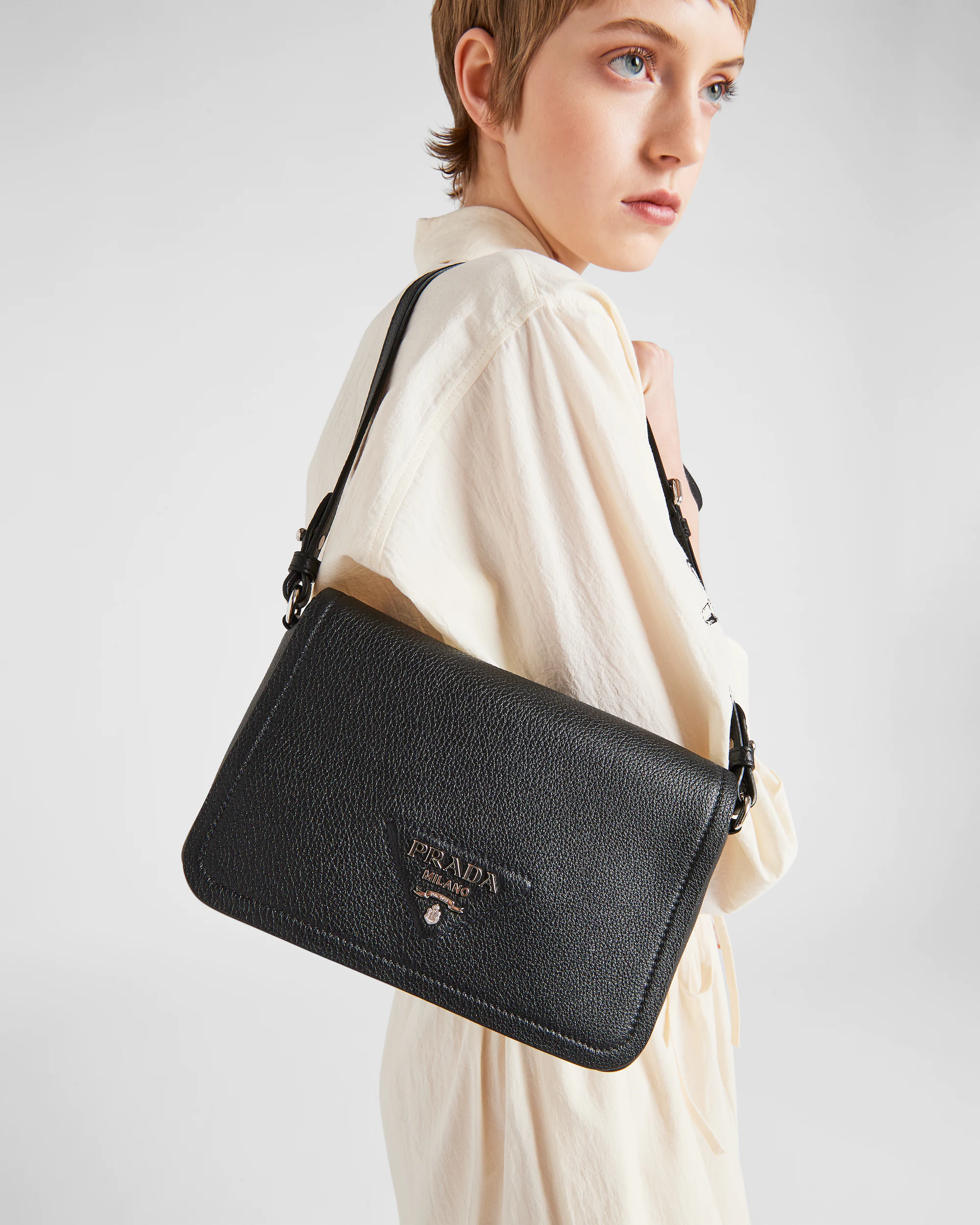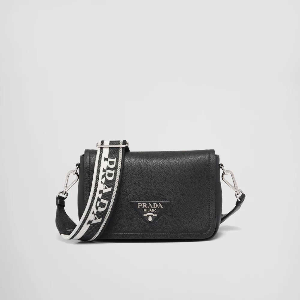 サイドにソフトなプリーツ入りのモダンなシルエット、フラップにゴールドのレタリングロゴをあしらった小ぶりなレザーバッグ。コントラストカラーのロゴ刺繍入り織テープの調節可能なショルダーストラップ付で、クロスボディバッグとしてもショルダーバッグとしても使用できる使い勝手に優れたバッグ。